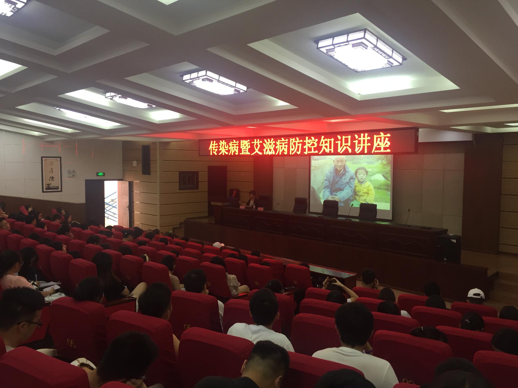 6月7日下午,为保障校园公共卫生安全,进一步做好传染病预防教育工作,提高学生的自我保护意识和能力,后勤处和学工部联合邀请乌当区疾病预防控制中心杨亚玲医师,在道德讲堂举办了以“校园传染病暨艾滋病防控”为主题的知识讲座。各学院专职辅导员、医保专管员以及学生代表共计240余人参加。后勤处副处长舒红琴主持了讲座。