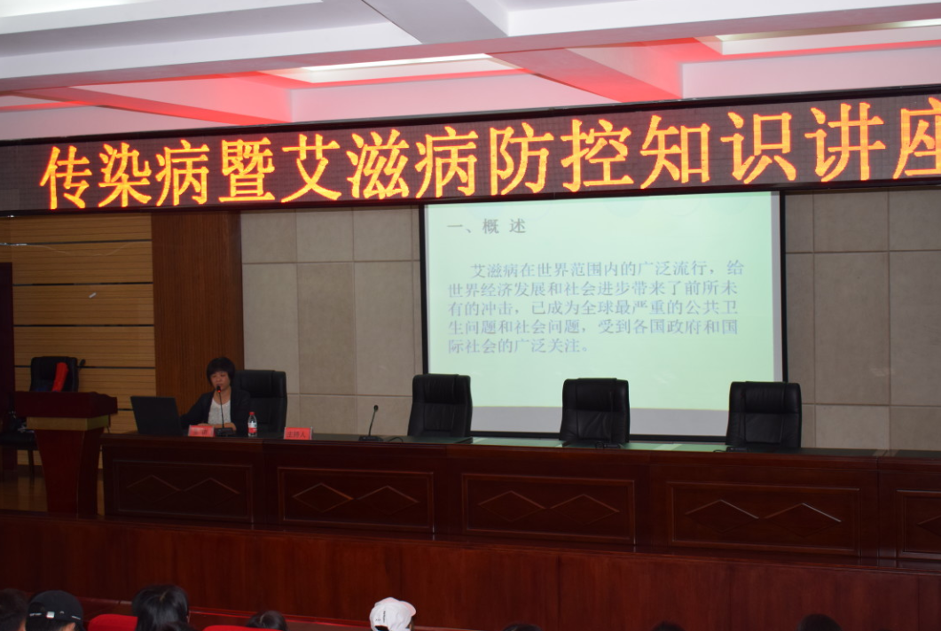 讲座上,杨亚玲医生重点从学校传染病防控中影响较大的艾滋病和结核病两种乙类传染病防控进行讲解。她通过形象的视频文件、权威的数据,从艾滋病和结核病的发病起源、传播途径、治疗办法、治愈效果、防控手段等各阶段的状况进行了解读,她倡议同学们重视传染病防控意识,学会自我健康管理。杨医师还引用大量案例形象地向同学们阐述了传染病暨艾滋病防控对增强自我保护意识和社会责任意识,营造健康和谐的校园环境的积极意义。