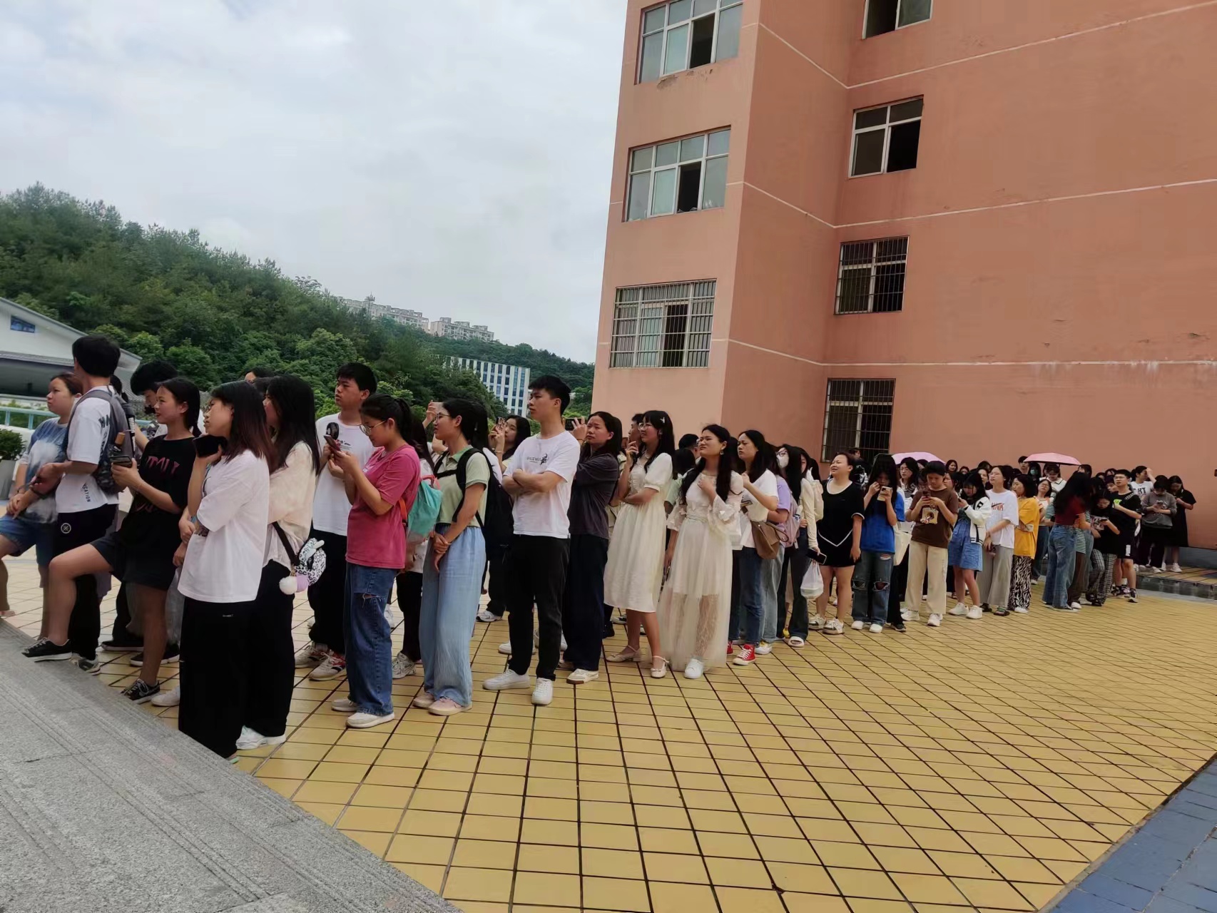 学生排队领粽子
